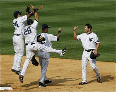 The Yankees celebrate after a win.