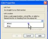 o Type Top of Page somewhere at the bottom of the page. Highlight that and insert / link and then hit the down arrow and see top, middle and bottom, all the anchors you created.